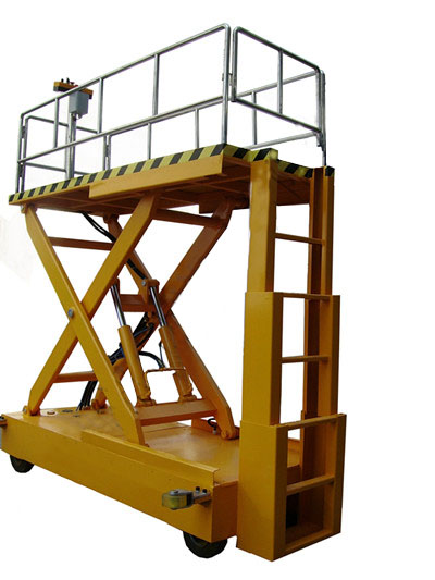 液壓升降臺加裝軌道輪和行走驅動程序機構,以實現(xiàn)升降臺在軌道上行走。可選動力:人工動力;交流電源、直流電源。升降臺可滿足大負載量要求。